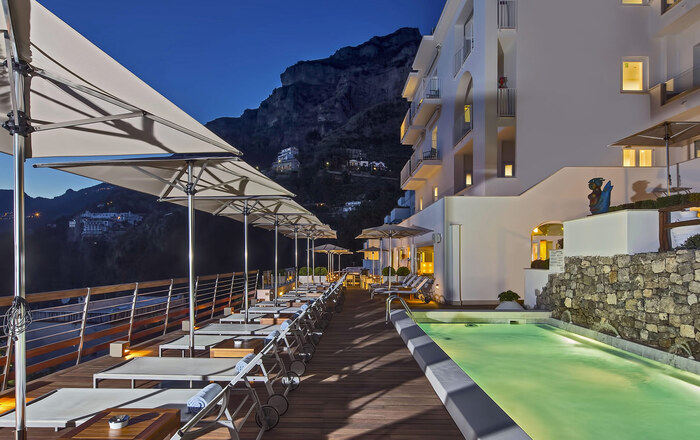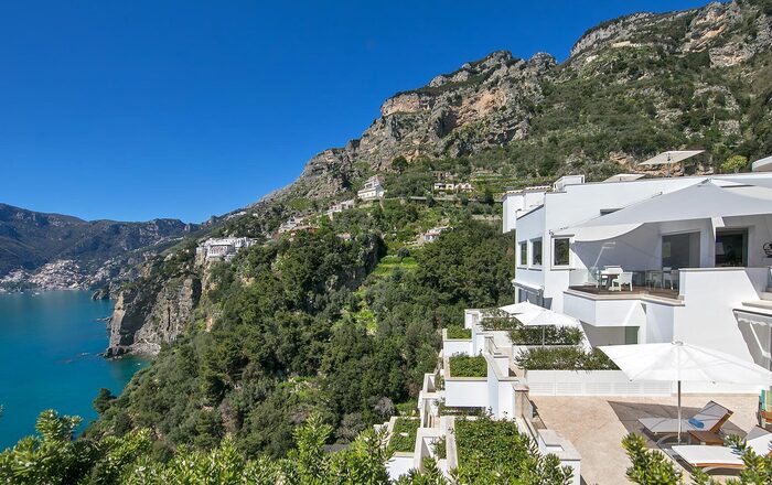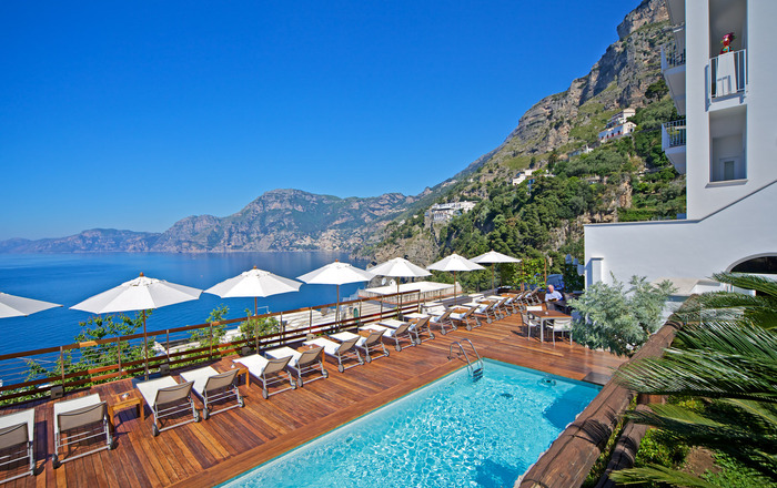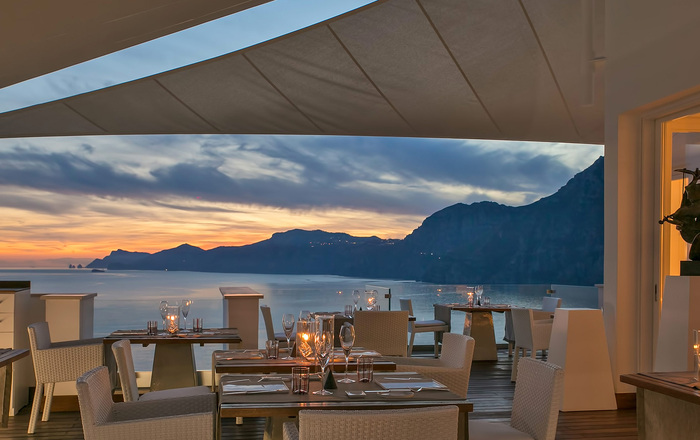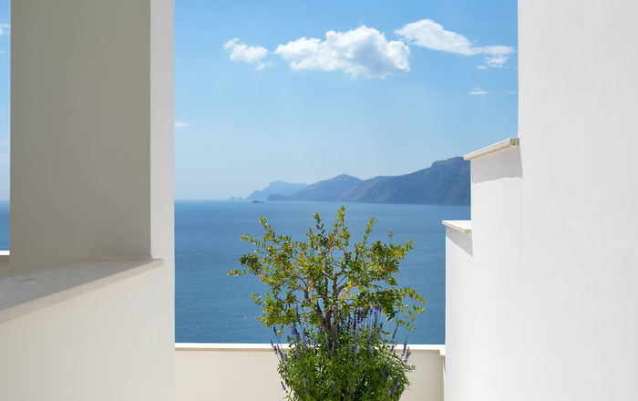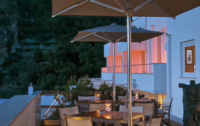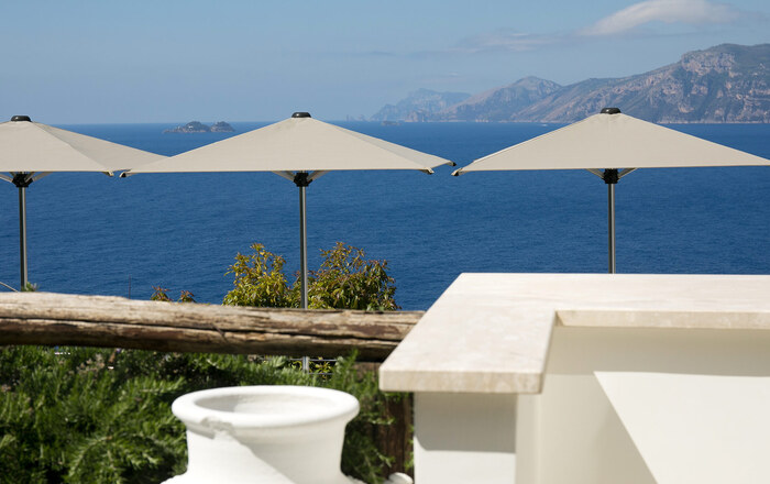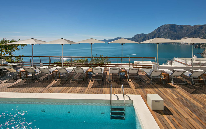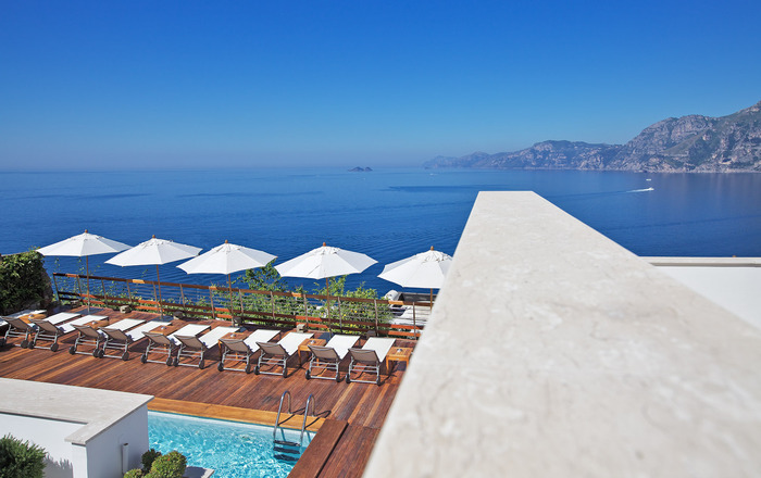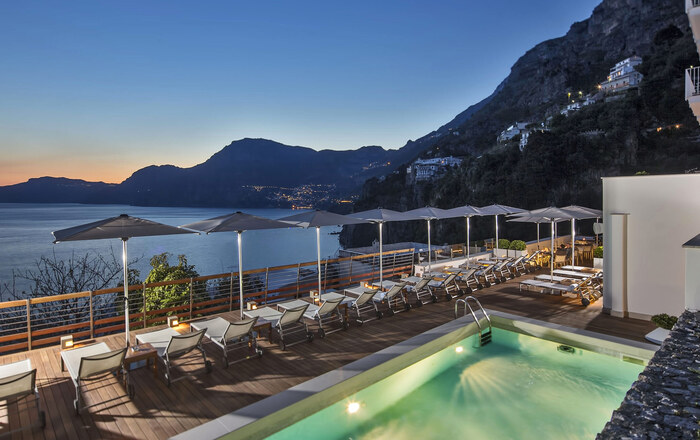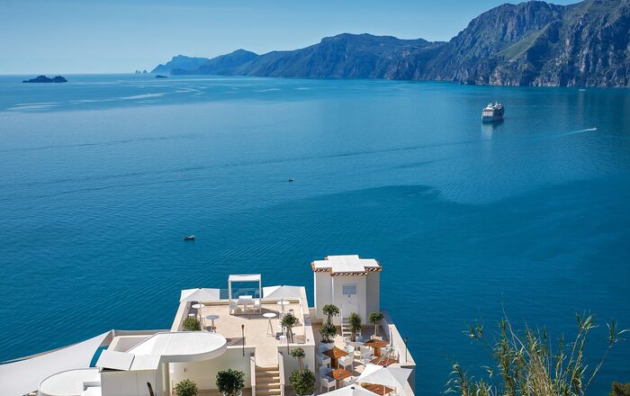 Prachtig boutiquehotel met 39 kamers op de hoge kliffen van de Amalfikust, tussen de groene bergen en de diepblauwe zee; in Praiano, tussen Positano en Amalfi.