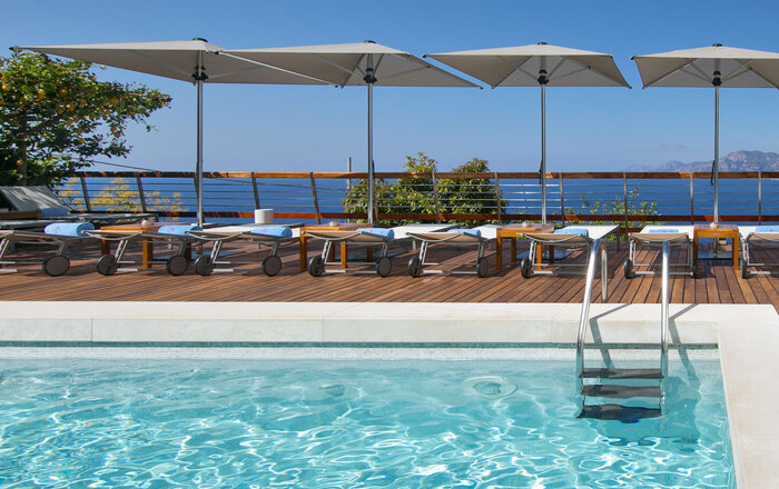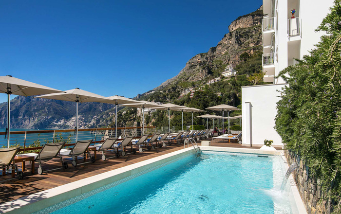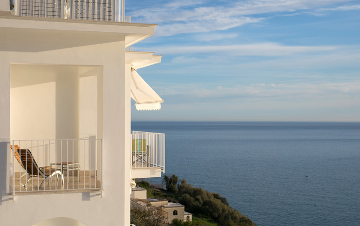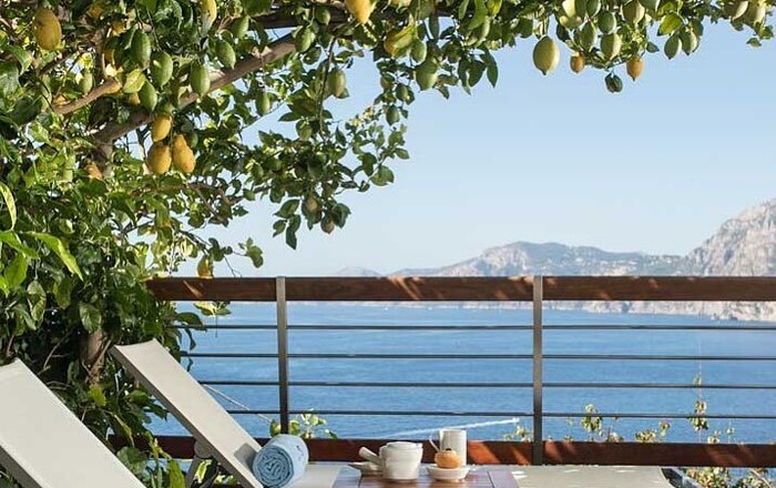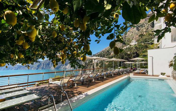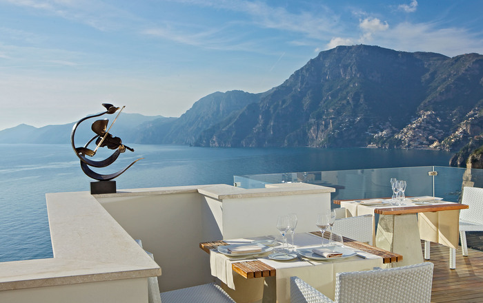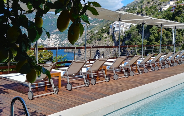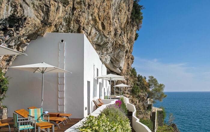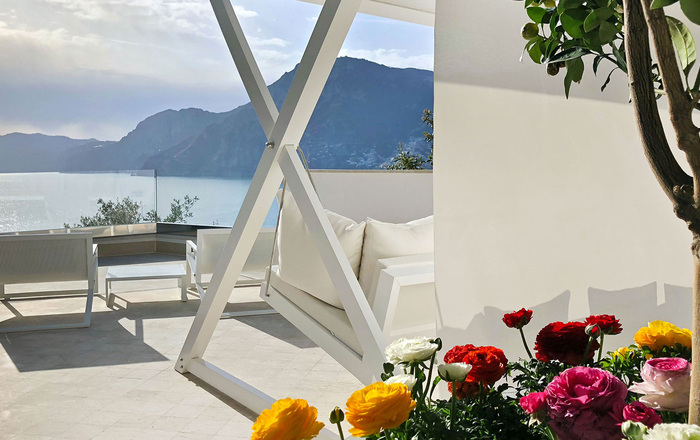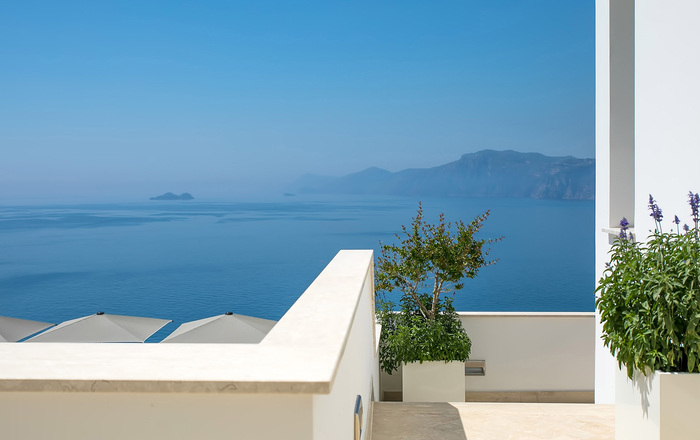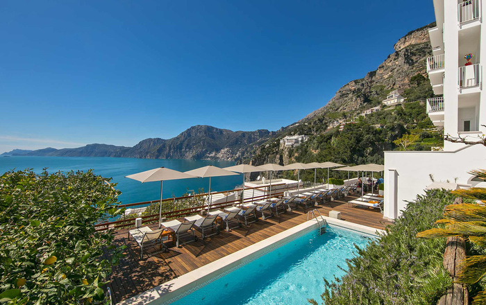 Prachtig boutiquehotel met 39 kamers op de hoge kliffen van de Amalfikust, tussen de groene bergen en de diepblauwe zee; in Praiano, tussen Positano en Amalfi.