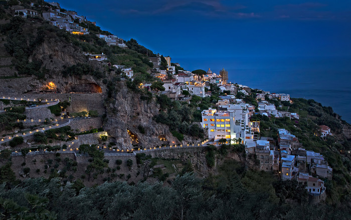 Tussen Sorrento en Salerno koestert Praiano zich als een verborgen parel in de schaduw van haar populaire buren Positano en Amalfi. Haar pittoreske vissershaventje 'Marina di Praia', met een handvol kleine huizen en de Chiesetta dell'Annunziata, houdt ze als een onontdekte schat verborgen tussen de steile rotsen van de betoverende kustlijn. Alleen wie de vele smalle trappen trotseert langs geurende oleanders en bougainvillea's, maakt kennis met deze minirepubliek, waar gebruiken en gewoontes overgaan van vader op zoon en waar tientallen kleurrijke bootjes dobberen voor het strand. De ondergaande zon tekent het machtige silhouet van Capri en van oude Saraceense torens die de zoute zeebries hebben weerstaan en fluisteren 'Il tuo respiro vorrei avere, mare…'.