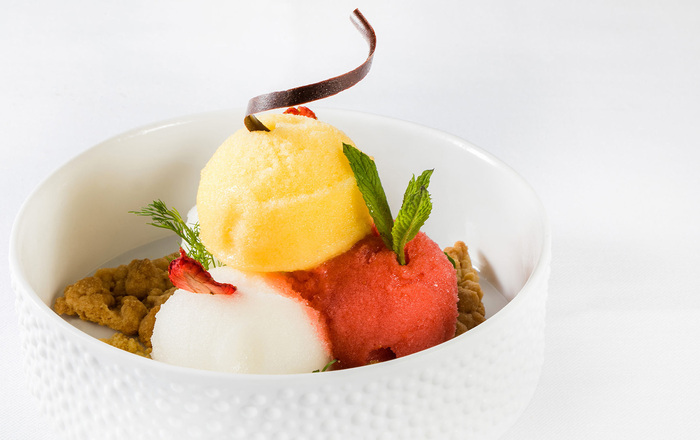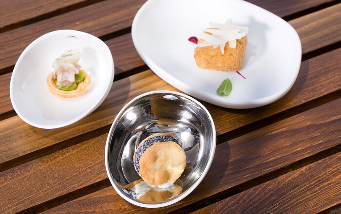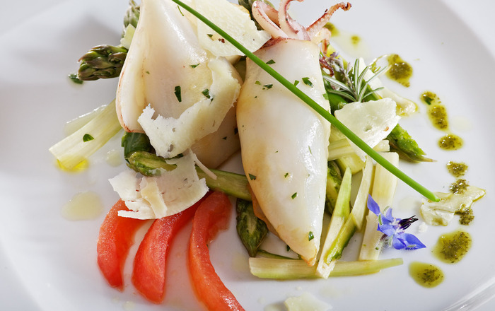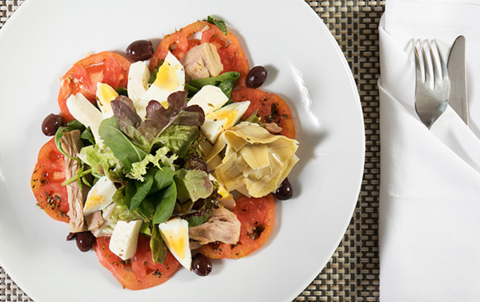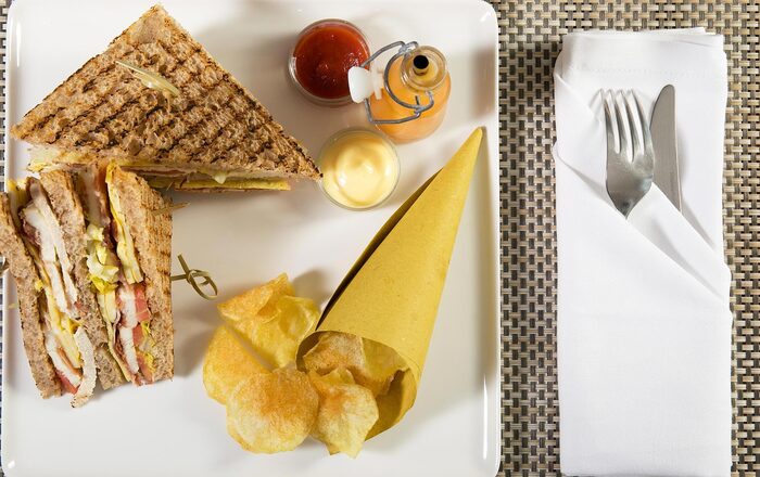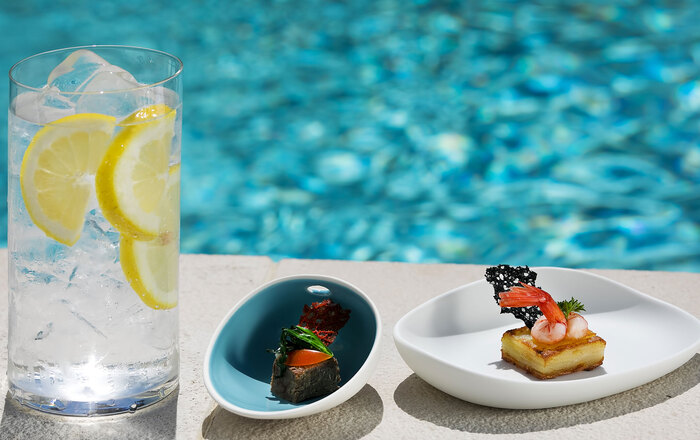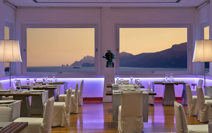 Kwaliteitsvol ontbijtbuffet (type brunch). Lichte maaltijden mogelijk nabij het zwembad. Het panoramisch restaurant serveert een verfijnde mediterrane keuken, bij goed weer op het terras met zeezicht.