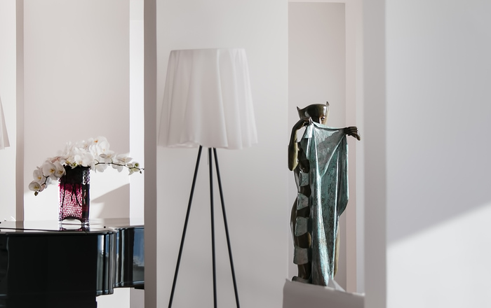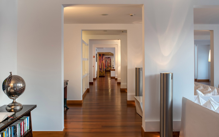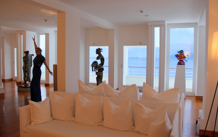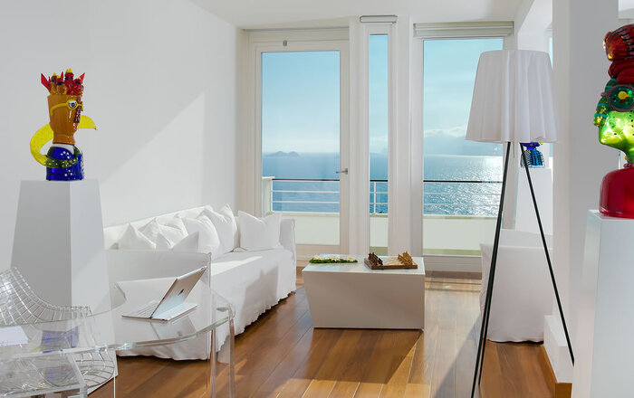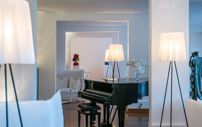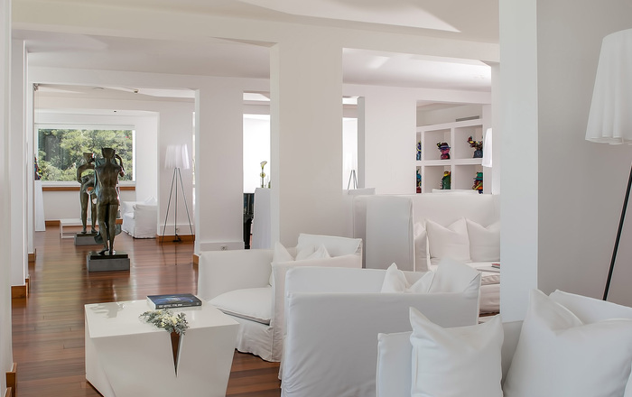 Toen de eigenaar dit gebouw uit 1975 omtoverde tot een schitterende 'Casa', verzamelde hij het beste dat hij tijdens zijn vele reizen in hotels had opgemerkt en vond hij vooral inspiratie in het Delano Hotel in Miami. Kunstwerken uit zijn privé-collectie geven klasse aan het witte interieur met designsofa's, strakke Philippe Starck-lampen en vrolijke kleurige sculpturen in Murano-glas. Al dat moois draagt hij op aan zijn overleden moeder, Angelina.