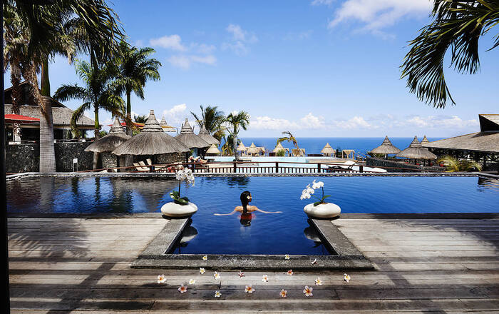 In het ruige zuiden van La Réunion, omringd door suikerrietvelden, een kokospalmbos en een tropisch natuurpark. Het hotel ligt in de heuvels en geniet van indrukwekkende uitzichten, o.m. over het prachtige glinsterende koraalzandstrand van Grand Anse.