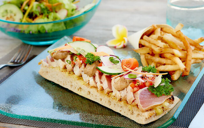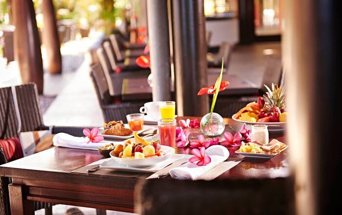 Heerlijk tafelen kan in één van de 3 restaurants. Zo is er de brasserie Le Deck met typisch creoolse smaken en een uitmuntende wijnkelder. In Le Makassar proeft u van een gastronomische keuken, terwijl Le Kah Beach lichtere maaltijden serveert in openlucht. Vergeet zeker ook de gezellige loungebar Kokoa niet met haar prachtige panorama op de oceaan. De ideale plek om de avond af te sluiten.