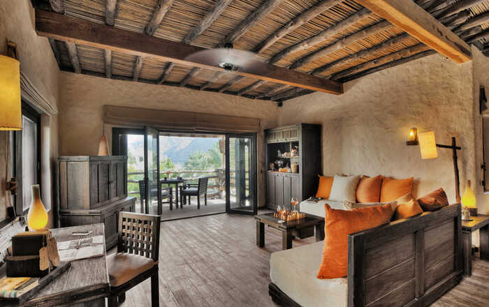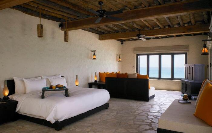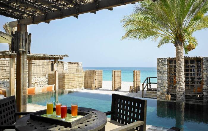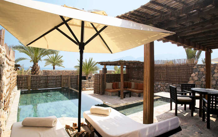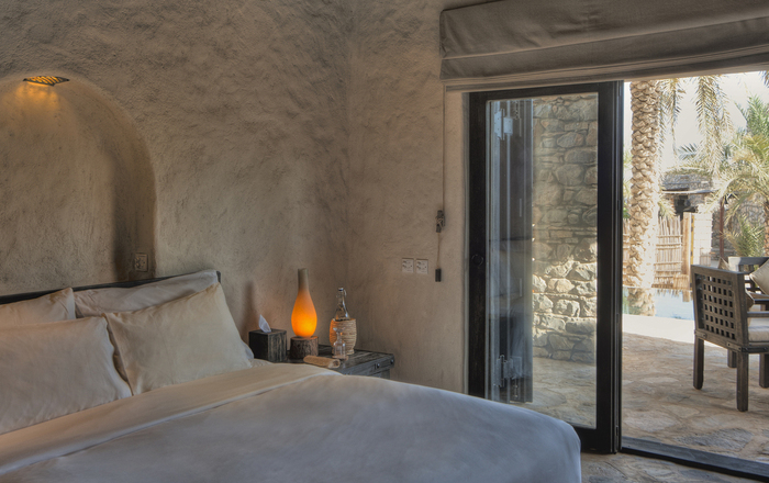 - De villa’s en suites zijn geïnspireerd op de traditionele Omanihuizen en hebben hoge plafonds in inheemse stijl, een kleurrijke woonkamer en wolkachtige bedden. Alle villa's hebben een privézwembad.