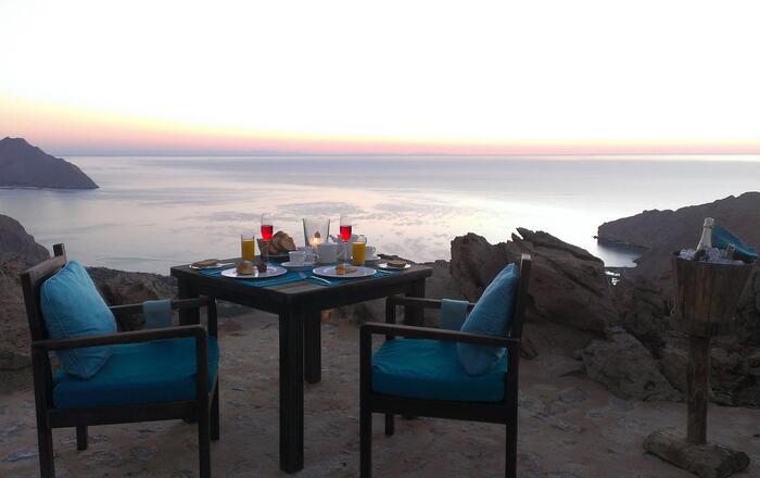 Uniek is het restaurant ‘Sense on the Edge’, wat zich maar liefst 293m boven zeeniveau bevindt en uitkijkt over Zighy Bay, de perfecte plek om te genieten van een zeer gedenkwaardige avond.