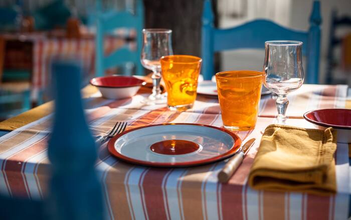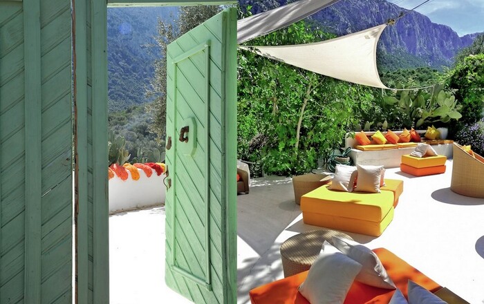 Verfraaid met Sardijnse inrichting, bedacht in de Su Gologone Art Workshops, met felle kleuren die afsteken tegen het typische witte pleisterwerk.