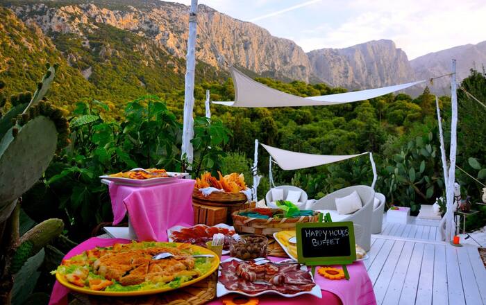 Ontbijtbuffet met o.a. lokale kazen, honing uit Oliena en artisanaal brood. Lichte lunch of buffet mogelijk bij het zwembad. Het restaurant serveert een natuurlijke, regionale keuken met o.a. huisbereide pasta en speenvarken aan het spit. Het halfpension bestaat uit een à la carte-menu met verschillende keuzes. Bij goed weer worden de maaltijden genomen op het terras. Wijn-, olie- en kaasdegustaties op aanvraag (mits suppl.).