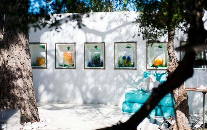 De explosie van kleuren wordt perfect aangevuld door het assortiment van penselen, canvas, kleurpotloden en papier en een ezel, ter beschikking gesteld van de gasten.