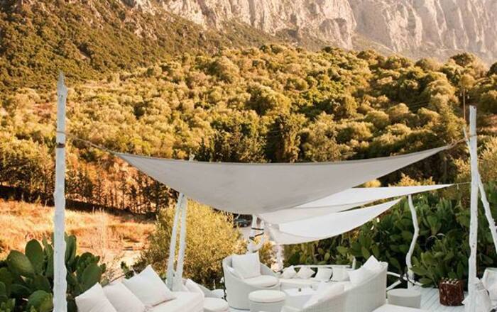 Su Gologone is rustig gelegen, omringd door geraniums, hortensia's en bougainvillea en op vijfentwintig kilometer van het dichtstbijzijnde strand, in het hart van Barbagia - een deel van het eiland dat rijk is aan tradities en geschiedenis. Oude olijfbomen en wijngaarden klampen zich vast aan de hellingen van het ongerepte bergachtige gebied van Supramonte in Centraal-Sardinië, waar de lucht geurt naar mirte en rozemarijn.
