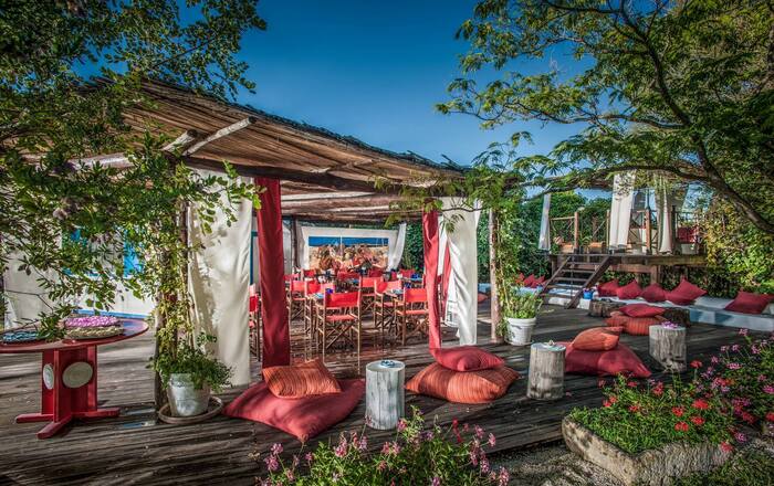 Bar, wijnbar, terrassen, moestuin, shop met artisanale objecten en textiel, bibliotheek, wifi.
