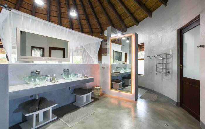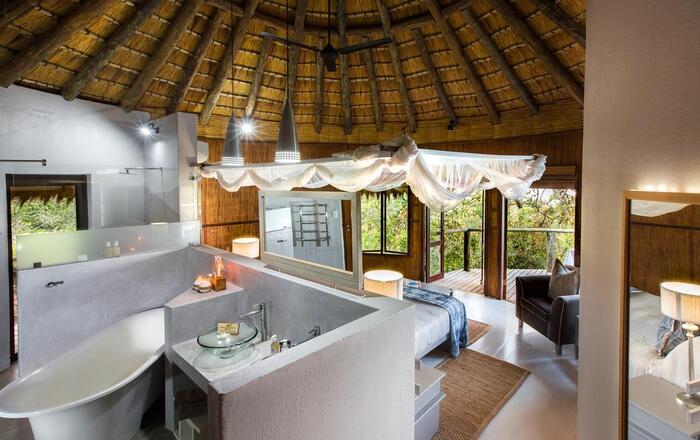 Er zijn slechts twee van deze prachtige familiekamers, elk met twee slaapkamers met en-suite badkamers. De grote hoofdslaapkamer (kingsize of twin) heeft een open badkamer met bad, dubbele wastafel, apart toilet en douche. De slaapkamer komt uit op een eigen balkon met uitzicht op de inheemse bush.