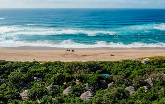 Thonga Beach Lodge ligt aan de ongerepte stranden van Maputaland Coast, KwaZulu-Natal, dat deel uitmaakt van het iSimangaliso Wetland Park van 332.000 hectare dat in 1992 tot Werelderfgoed door de UNESCO werd uitgeroepen.