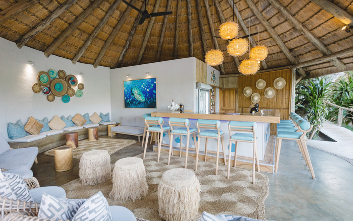 De 12 vernieuwde (2022) suites zijn ondergebracht in eco-luxe hutten met rieten daken en bieden uitzicht op de oceaan of het bos en hebben een eigen plonsbad. De suites zijn gepositioneerd om een maximale privacy en een minimale milieu-impact te hebben. Uitstekende gerechten worden buiten op het terras aan het restaurant of op het terras op het strand met uitzicht op de zee geserveerd.