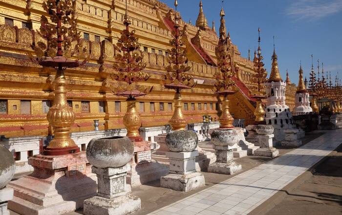 De oude hoofdsteden rond Mandalay komen vandaag aan bod. Eerst ziet u de 200 jaar oude U Bein-brug, waarvan wordt verondersteld de oudste en langste teakhouten brug in de wereld te zijn. U bezoekt de boeddhistische Mahamui tempel. De legende wil dat Boeddha zelf de stad Arakan in 554 bezocht en dat koning Sanda Thuriya beval een gelijkend beeld van boeddha's gezicht te plaatsen in de tempel. Dan naar het Shwe In Bin klooster en terug naar de boot. Tijdens de middag vaart u naar Ava en maakt u een rit per paardenkoets langs de ruïnes van het koninklijk paleis. Strand cruise heeft het voorrecht hier aangemeerd te blijven voor de nacht. Hun passagiers kunnen hier de sites bezoeken na de drukte.